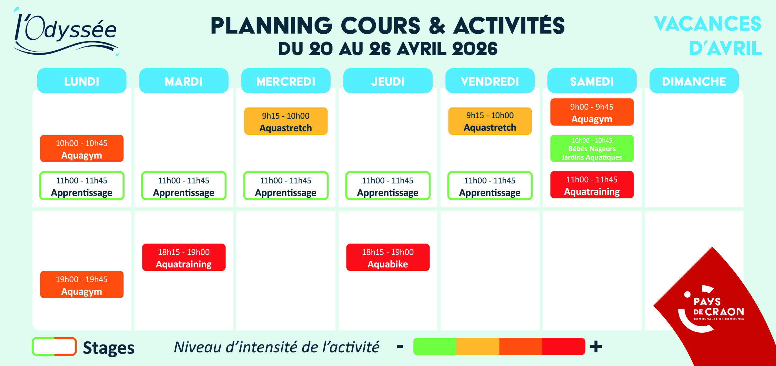 Retrouvez les plannings activités et horaires